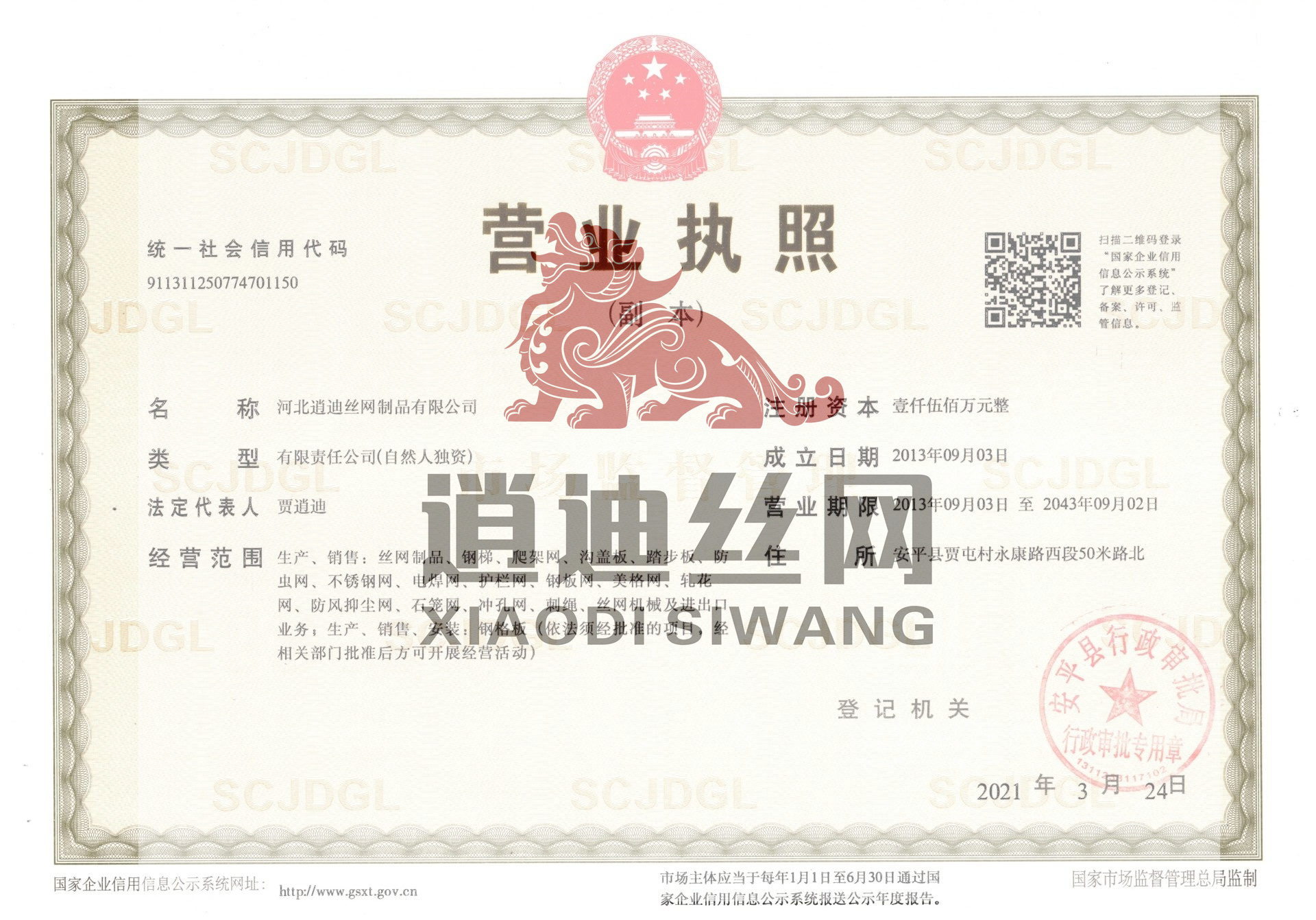 河北逍迪絲網(wǎng)制品有限公司誠信天下,誠信是我們公司一個原則問題不可撼動的,以心中有誠信的思想結(jié)交五湖四海的朋友,能達到雙贏是最好的,我們堅信朋友多了路好走,我們公司都是老朋友多,我們一直是這樣做的。河北逍迪絲網(wǎng)制品有限公司成立于2013年注冊資本壹仟伍佰萬整,主要生產(chǎn)沖孔網(wǎng),鋼格板,金屬防蟲網(wǎng),如實的實體廠家,是一家-研發(fā)-銷售-生產(chǎn)-安裝-售后一條龍公司,2019年通過了ISO 9001認證管理體系符合GB/T 19001-2016/ISO 9001:2015標(biāo)準,同時通過了SGS認證,擁有商標(biāo)版權(quán)2品牌,擁有一個著作版權(quán),河北逍迪絲網(wǎng)制品有限公司位于中國有名的(絲網(wǎng)之鄉(xiāng))安平縣,于天津,北京,雄安,石家莊相鄰,交通非常發(fā)達,出口可以選擇天津港口非常近每天都有接貨送貨往返車輛,空運可以選擇石家莊正定機場,附近也有鐵路運輸,當(dāng)?shù)剡€有兩個生態(tài)物流園區(qū)發(fā)往全國各地,我們沖孔網(wǎng)工廠生產(chǎn)設(shè)備有:普通沖壓機,高速沖壓機,自主研發(fā)小微孔沖壓機,龍門沖,磚塔沖孔,重型沖孔機,萬瓦級別激光切割機,3000W激光切割機,焊接設(shè)備,折彎機,校平機,剪板機,精密校平機,(對板面平整度要求苛刻的客戶群體0.5-0.2誤差)我們公司銷售市場沒有局限性國內(nèi)國外都供應(yīng),擁有出口權(quán)...